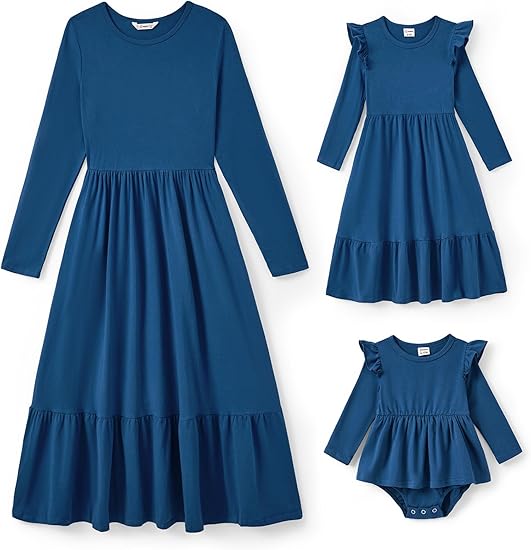 Mommy and Me Fall Dress Long Sleeve Crew Neck Flowy A Line Elegant Maxi Dress