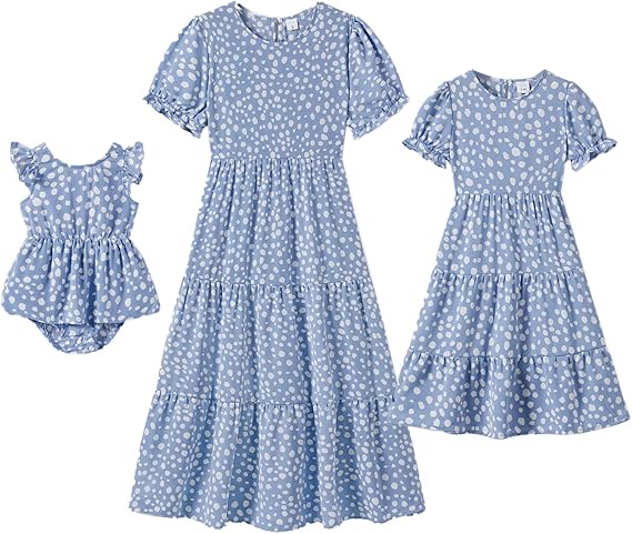 Mommy and Me Dresses Summer Casual Boho Matching Outfits Ruffle Puff Sleeve High Waist Midi Beach Maxi Dress
