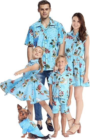 Matchable Family Hawaiian Luau Men Women Girl Boy Clothes in Christmas Santa in Hawaii Turquoise