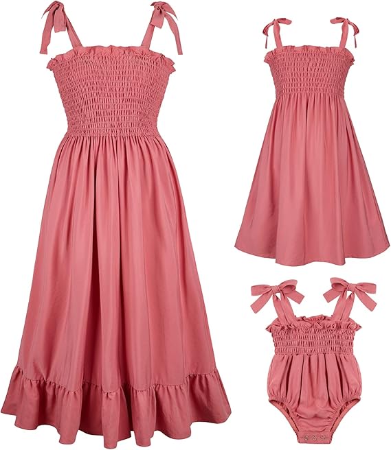 Mommy and Me Floral Smocked Dress Family Matching Outfits Set Sleeveless Sundress Beach Dress Summer Casual Dress