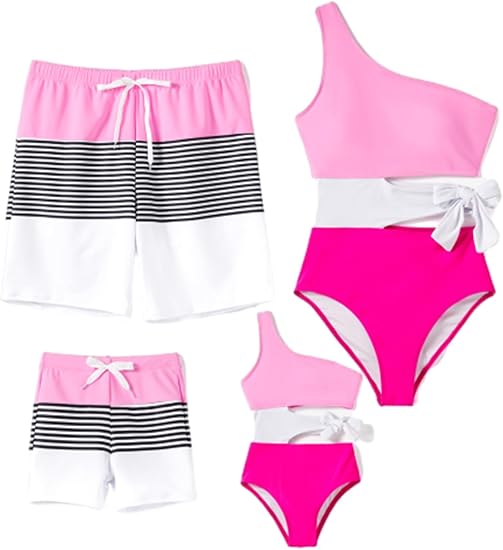 Family Matching Swimsuits Mommy and Me One Shoulder Cutout Colorblock Bathing Suits One Piece Swimwear Sets