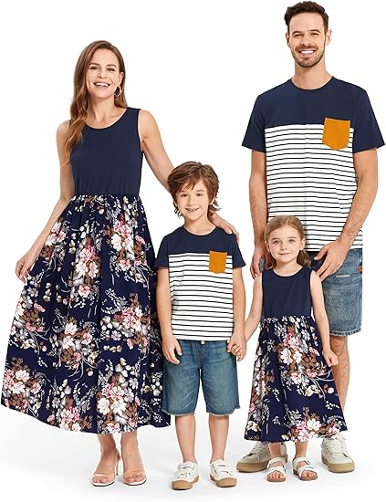 Family Matching Outfits Mommy and Me Dresses Tropical Boho Floral Tank Maxi Dresses and T-Shirts Matching Sets