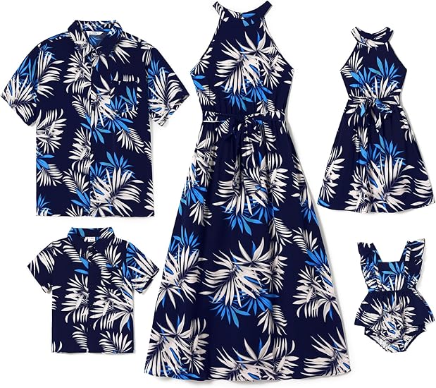Family Hawaiian Matching Outfits Mommy and Me Outfits Caribbean Vacation Tropical Halter Sundresses and Shirts