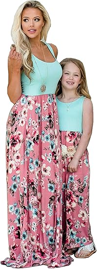 Mommy and Me Dresses Matching Outfits Floral Printed Sleeveless Tank Maxi Dress for Mother and Daughter